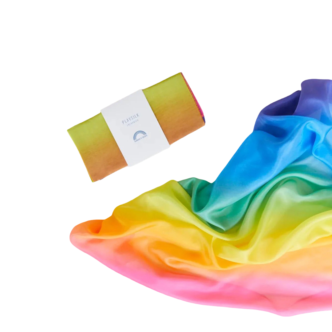 Sarah's Silk Multi Coloured Playsilks come in beautifully blended colours. Playsilks will be used for anything you can imagine.